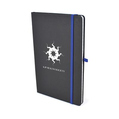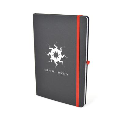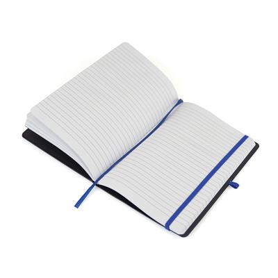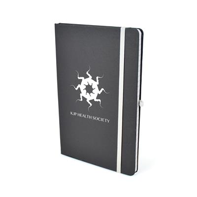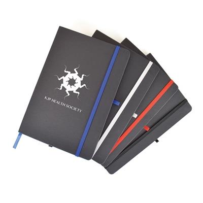 Introducing this A5 recycled black notebook, featuring 90 white lined pages, a coloured bookmark, pen loop, and elastic enclosure.