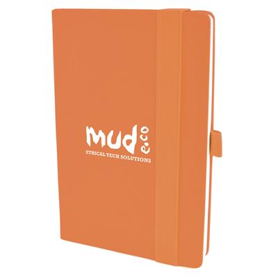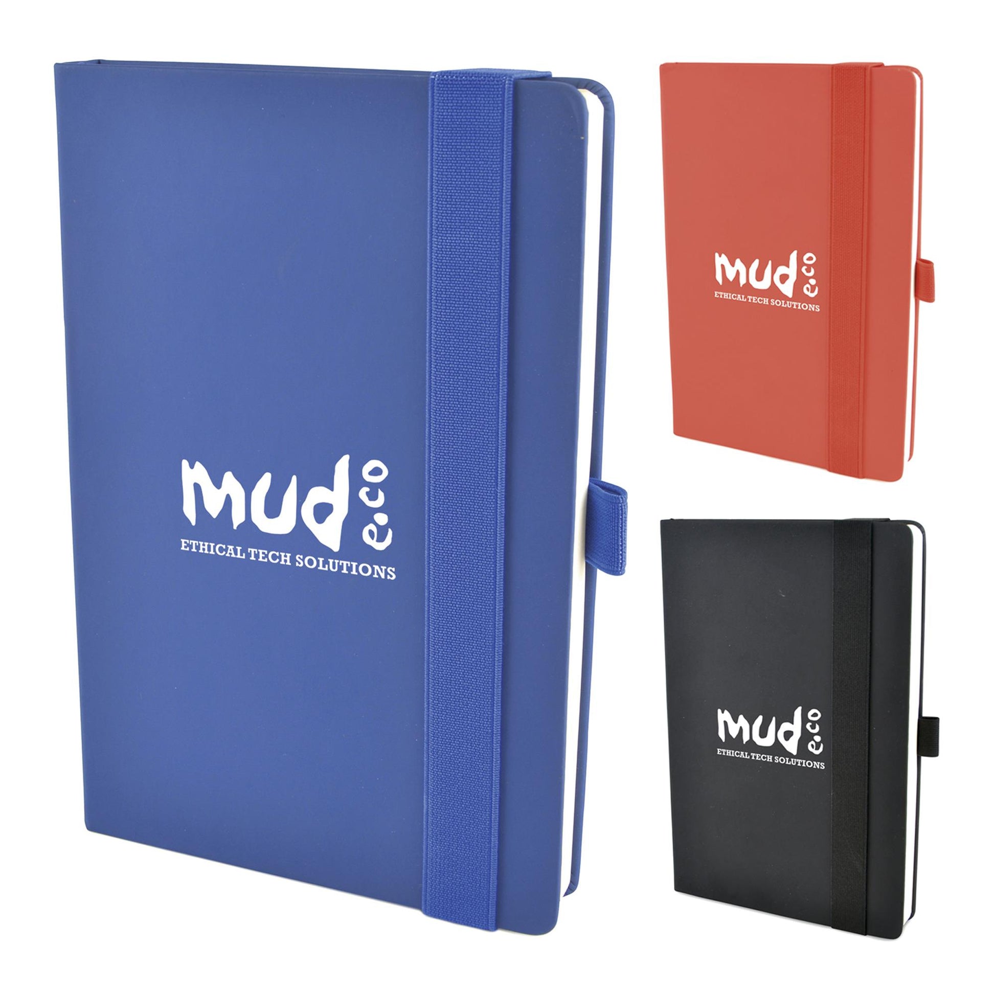 This A5 PU soft-finish notepad features 160 lined sheets, a ribbon bookmark, a convenient back pocket for securing loose notes and business cards, a pen loop, and a thick elastic closure.