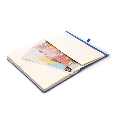 This A5 PU soft-finish notepad, features 80 lined pages, a built-in bookmark, a rear pocket for storing loose papers, a convenient pen loop, and a secure elastic closure.