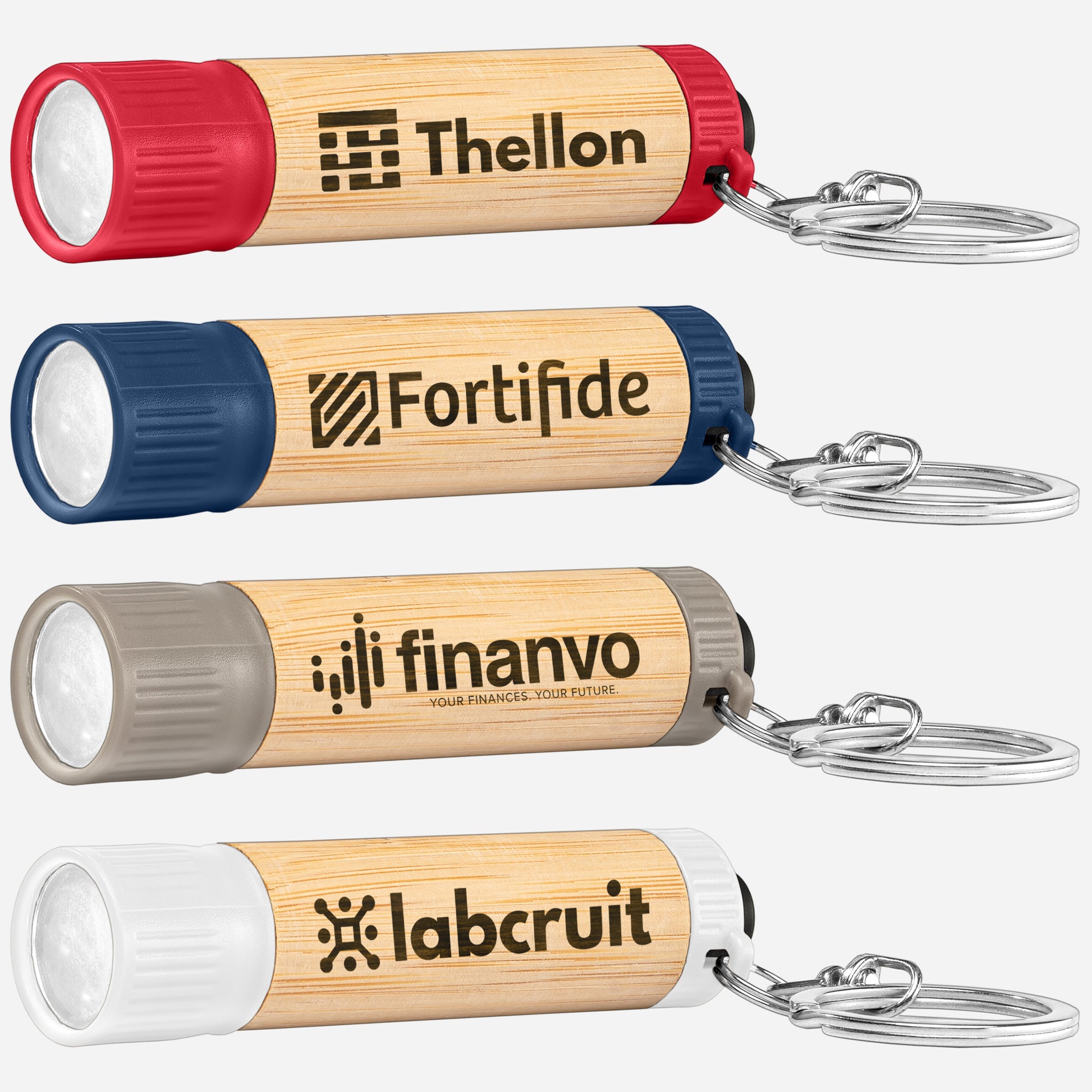 Introducing this sleek bamboo LED torch with key ring – a blend of elegance and functionality tailored for everyday use. Crafted with a bamboo body, this torch boasts a natural, sophisticated aesthetic. Featuring a potent SMD flashlight equipped with three bulbs, it emits an impressive 12-14 lumen light for superior brightness. The clear plastic lens ensures optimal illumination in any situation. With its easy-to-use black push-button and four LR44-Button ANGLI batteries providing two hours of continuous light, convenience is at your fingertips. Additionally, the silver swivel keyring with a flat ring makes attaching it to your keys or bag a breeze.