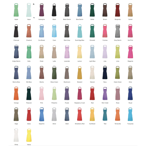 This aprons comes in over 60 colours including denim. See images for colour selection.