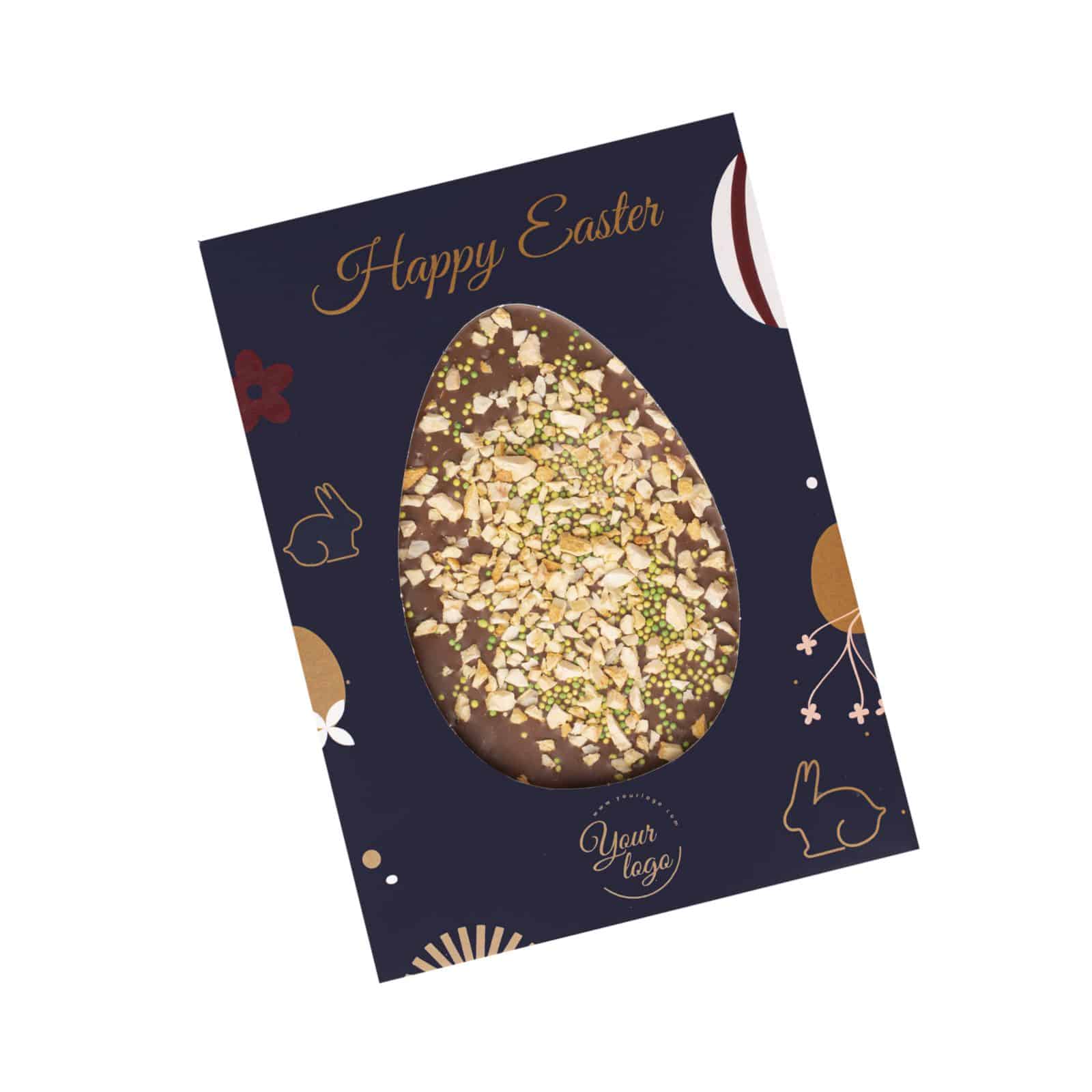 Introducing this Choco Easter Egg – a decadent masterpiece crafted from perfectly pure chocolate, adorned with a spring collection of toppings of your choice. This delightful Easter egg-shaped bar stands as a classic in its genre, presented in a generously sized package that we customise entirely according to your unique ideas and corporate needs.