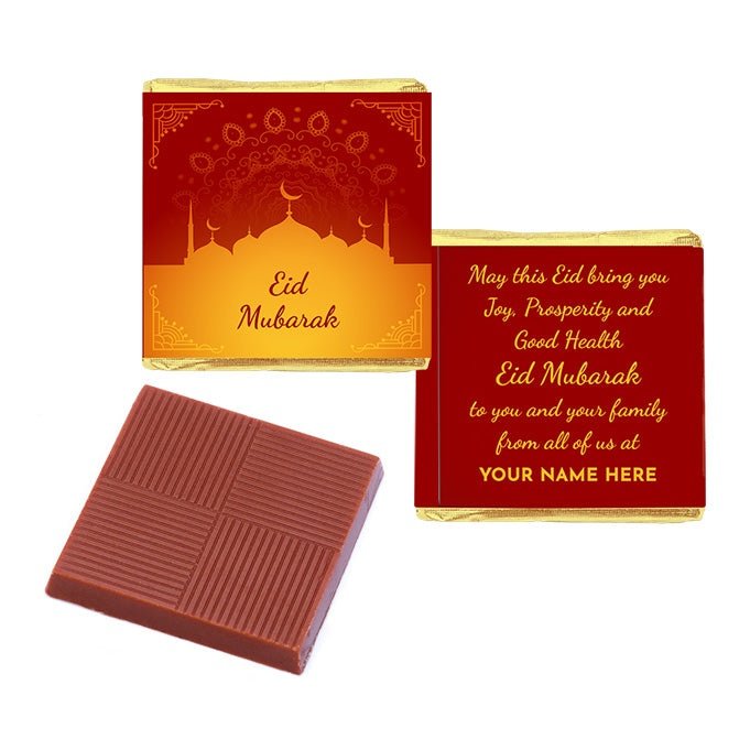 Not only do these chocolates offer a heavenly taste experience, but they also serve as thoughtful gifts to mark the joyous occasion of Eid. With the option to personalise with your business or trading name on the back, they become a unique way to promote your brand while spreading festive cheer.