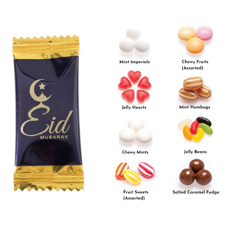 Your business can support seasonal celebrations and occasions in style with these 'Eid Mubarak' sweets, ideal for corporate merchandising or sharing the joy of the season with colleagues, clients, and loved ones.