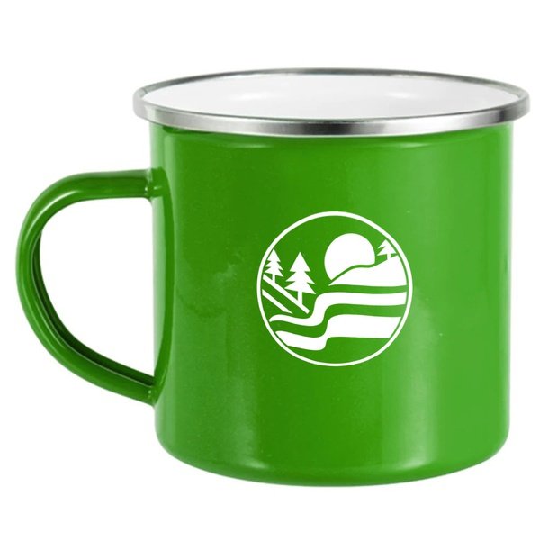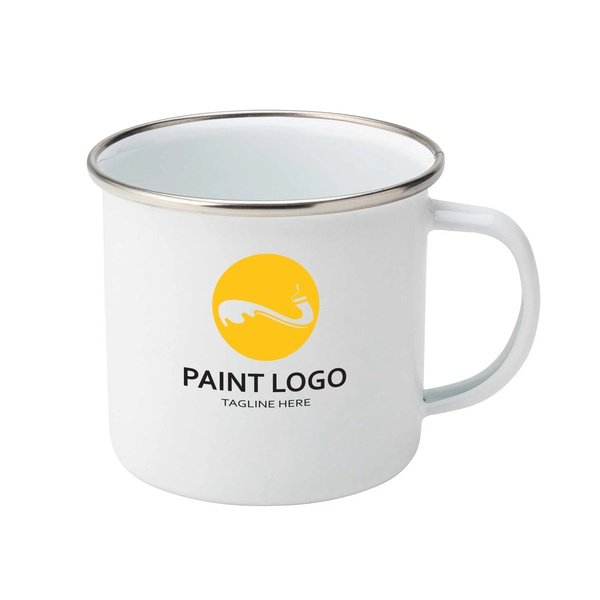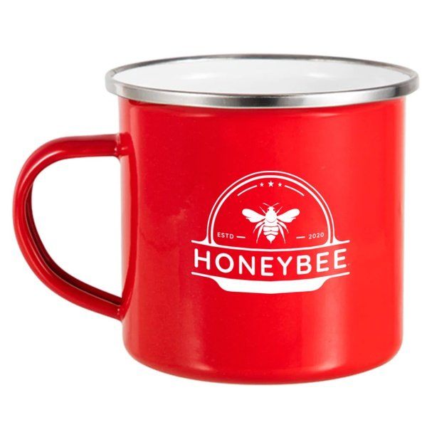 These are currently popular both as a branded mug or as a corporate gift. These 12oz ceramic enamel mugs are super durable and looks great printed.  The enamel mugs have a silver lining on lip for an added stylish look and feel.