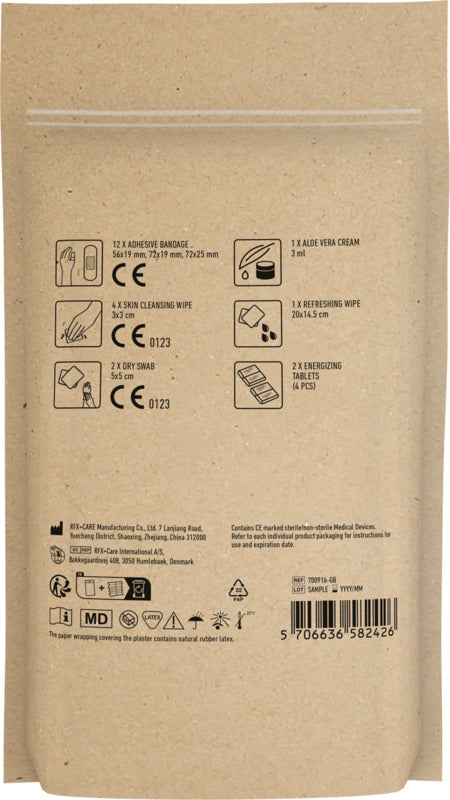 This Energiser Set in a Kraft Brown Pouch offers a refined solution to stay refreshed and prepared throughout your day. It includes wash-proof plasters, energizing tablets, refreshing wipes, aloe vera, and cleansing swabs—all compliant with EU safety standards. Presented in an FSC-certified paper pouch with full-colour branding, this set combines practicality with elegance, making it an ideal corporate giveaway that supports wellbeing and professionalism.