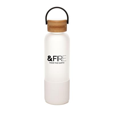 This frosted 500ml glass bottle features a refined bamboo lid and an integrated carry handle, blending elegance with practicality. Its protective silicone sleeve ensures a firm grip and enhances durability, making it an ideal companion for hydration anywhere. A sophisticated choice for corporate branded gifts that combine style and everyday usefulness.