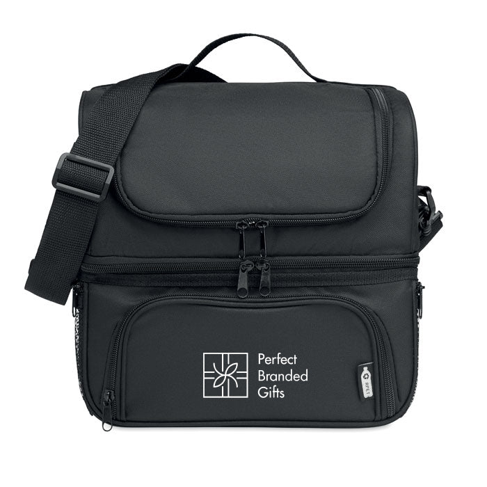 Perfect on boarding gift - this insulated cooler bag in 600D RPET includes a reusable PP 1900ml capacity lunchbox. Stay healthy and bring a homemade lunch to work or bring some drinks to thepark or beach for a relaxing afternoon. There are 2 different compartments to store both hot and cold food or drinks seperately. Carry the bag by the adjustable and detachable shoulder strap for more comfort.