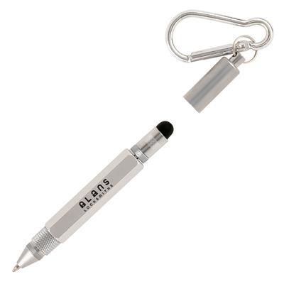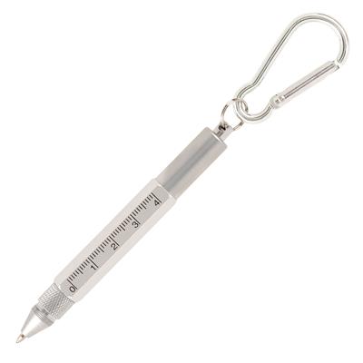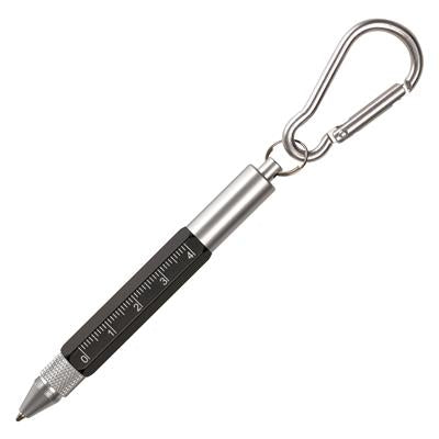 This elegant keyring tool pen features a robust aluminium barrel and incorporates practical cm/inch ruler markings, a stylus, and mini screwdrivers. Its integrated mini split ring and carabiner attachment provide convenient ways to secure it to keys, bags, or belt loops, ensuring effortless access while on the move. Ideal as a refined corporate giveaway, it combines functionality with a sleek design to represent your brand with distinction.