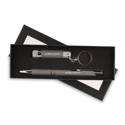 Elevate your corporate gifting with the Lumi Torch and Pen Set, expertly presented in a sleek gift box featuring a protective foam insert and a clear window. This refined ensemble pairs a soft-feel 3 LED torch with the elegant Aladdin soft-feel ball pen, combining practicality with sophistication. Ideal for professional settings, the set is designed to leave a lasting impression while offering useful, quality tools that recipients will appreciate.