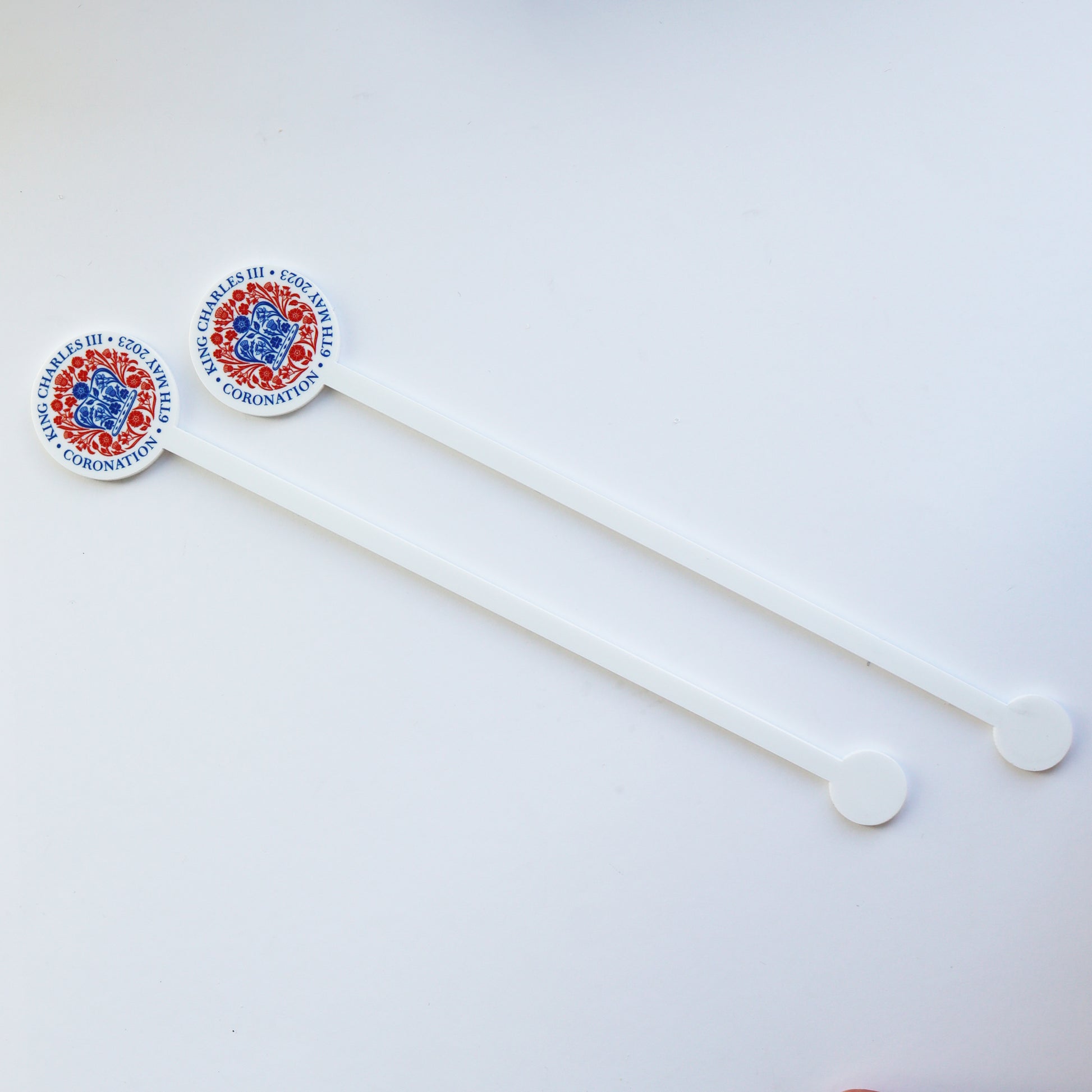 These white acrylic drink stirrers can be printed with any logo, words into any shape etc.