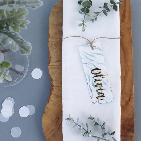These beautiful metallic printed vellum place settings are all individually handmade and make a beautiful, modern  place setting and as coorproate event table décor. So beautiful, that this corporate décor place setting also makes the perfect keepsake and favour. Guests love the fact they can keep and take home their name and use as a tag, bag tag or label. Want the paper behind printed with your corporate logo? No problem, just let us know. We can also foil in blue, pink, red, turquoise, gold, silver.....
