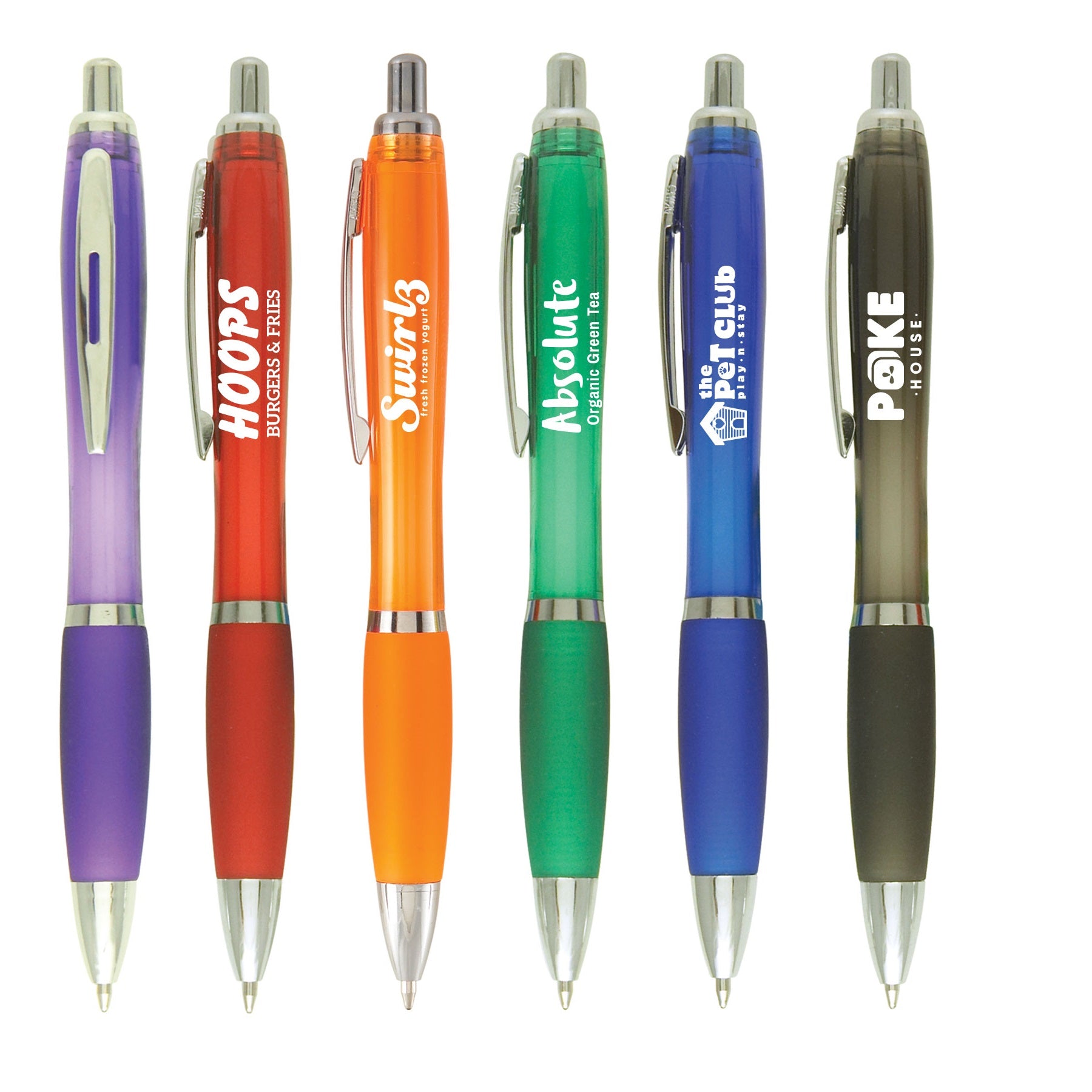 Introducing these eye-catching plastic pens, designed to make a lasting impression with its vibrant jewel-tone barrel and grip colours. Available in an assortment of captivating shades, this shapely pen is sure to add the wow factor to your promotional campaign. Equipped with a medium ballpoint tip and black ink, it offers versatile functionality for everyday use. Personalise it with your company name, logo, and promotional message to showcase why you're the preferred choice for doing business. With this stylish pen in hand, you'll leave a memorable mark on clients, partners, and prospects alike, reinforcing your brand identity and fostering strong connections.