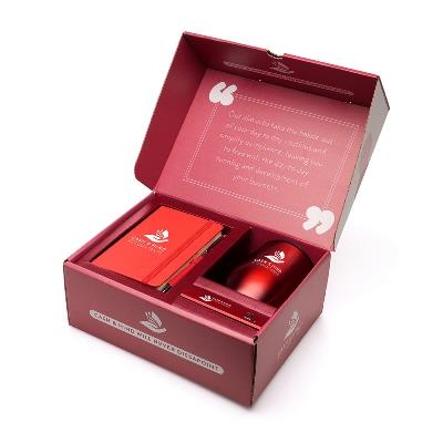 Elevate your onboarding experience with this sophisticated Small Red On Boarding Gift Set. It features the Monet double-walled stainless steel travel mug, ensuring drinks stay at the perfect temperature. Complemented by a sleek A6 Black Mole Notebook and a vibrant Mole Mate Ball Pen, this set encourages productivity in style. The metallic Red Cuboid Power Bank adds a practical touch, keeping devices charged throughout the day. Ideal for making a lasting corporate impression with premium branded essentials.