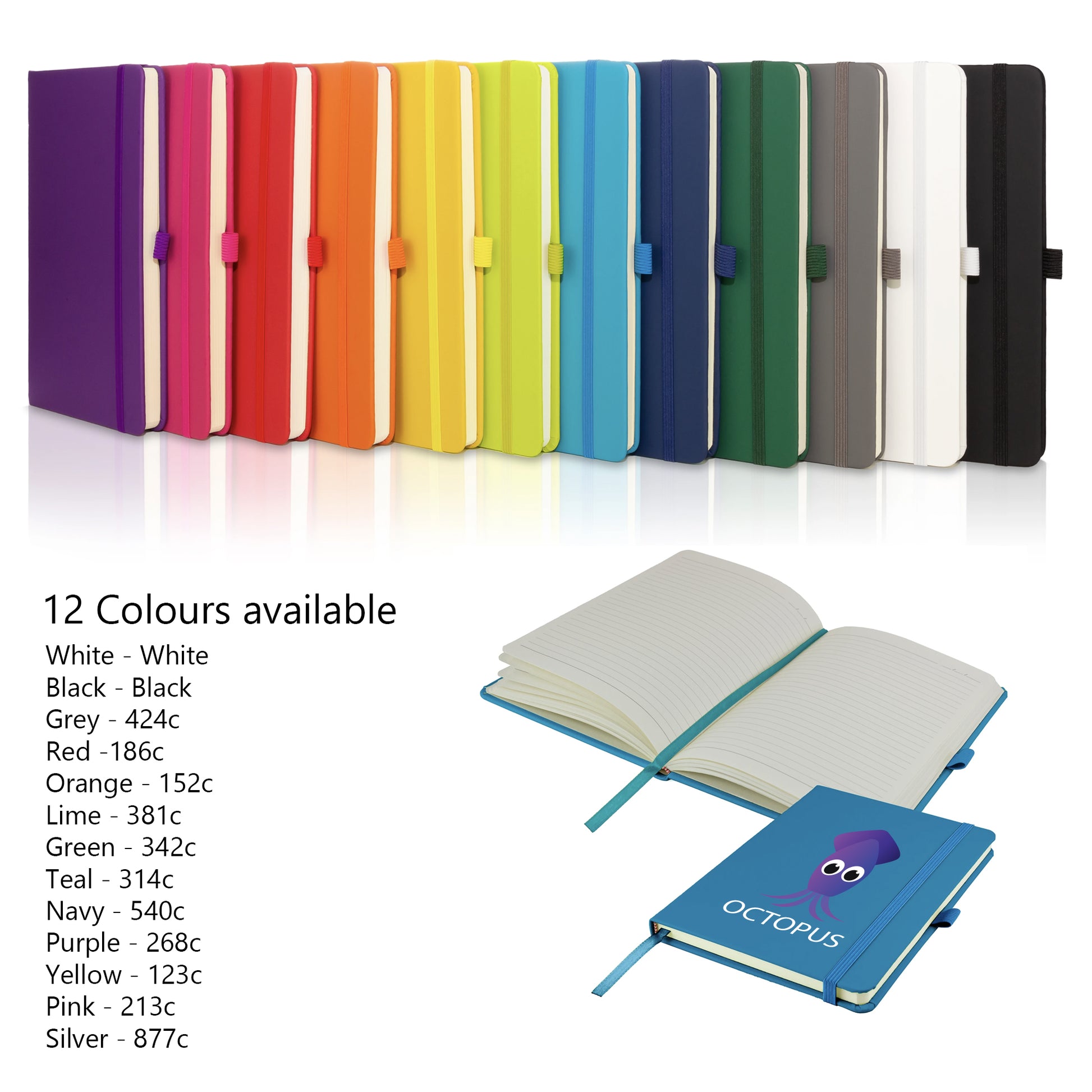 The following colours are available in this soft feel PU Leather A5 notebook.