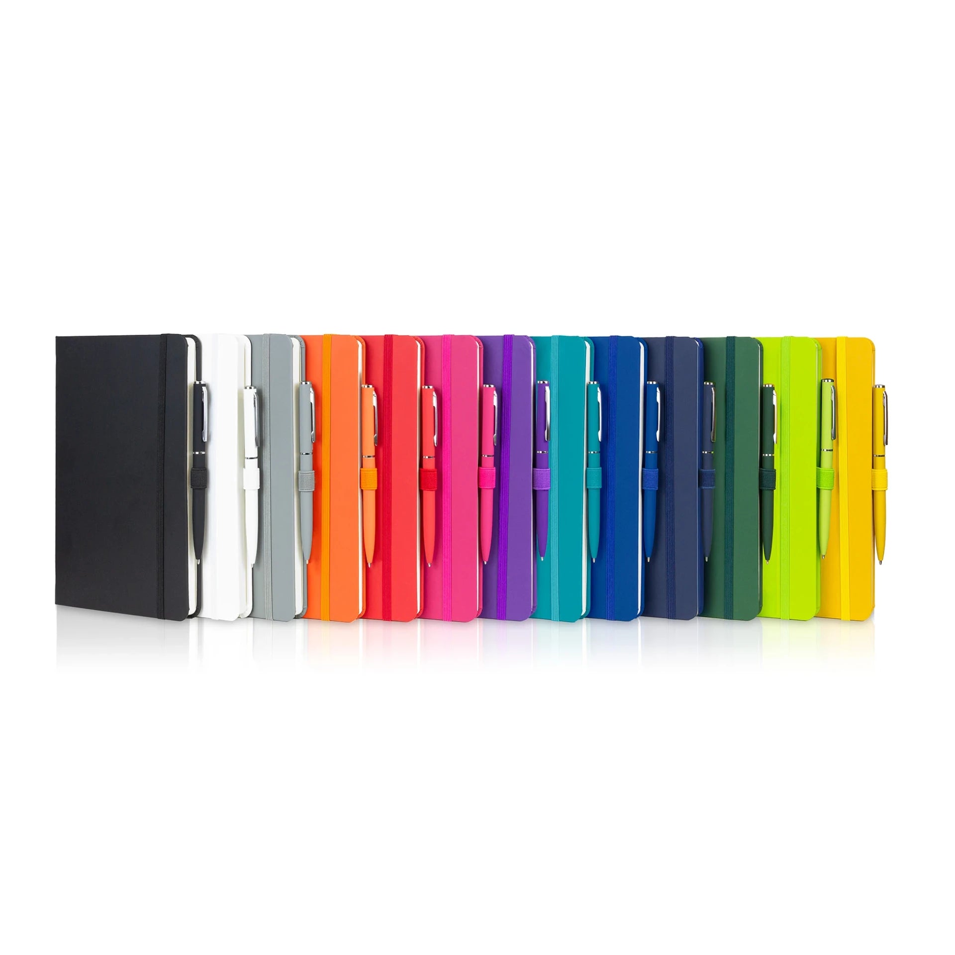 Take your notes to the next level with our eco-friendly Soft feel PU Leather A5 Notebook! Featuring a deluxe hardback cover in 13 different colors and 160 plain white pages, it's both stylish and environmentally conscious. Comes with a matching ballpen, ribbon, pen loop, and elastic closure. Keep your thoughts organized in the inside pocket. (Sustainably made with FSC-certified paper.)
