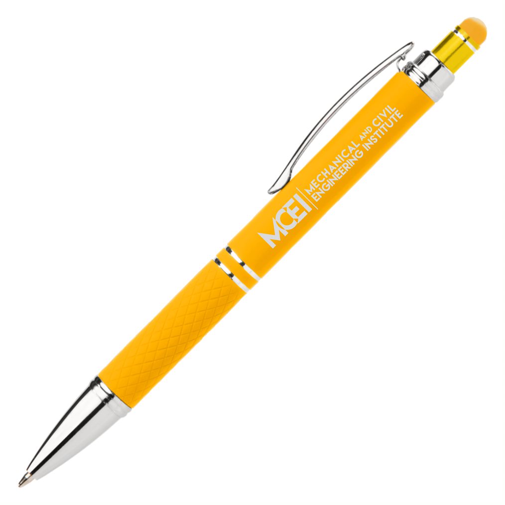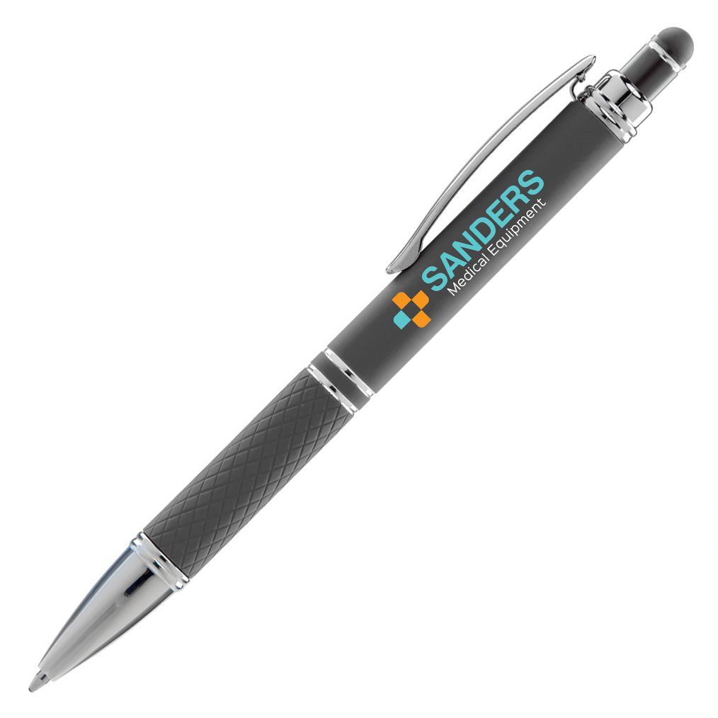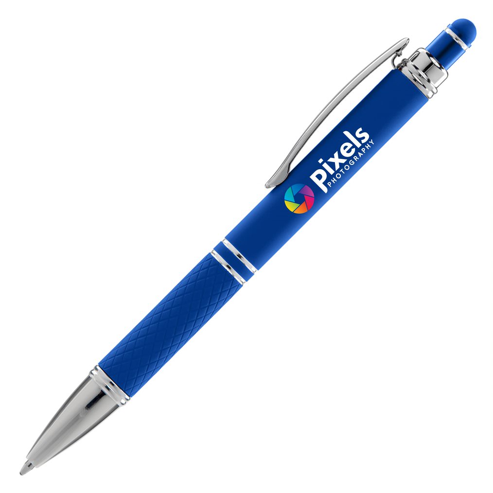 Introducing the Phoenix Softy, a contemporary metal click-action pen that redefines writing comfort and style. With a slightly wider barrel than the traditional ballpoint pen, it offers enhanced grip and control. The Phoenix Softy boasts a popular soft-touch rubberized finish, extending to the diamond-textured grip for optimal writing comfort. Its polished chrome accents, trim, and clip add a touch of sophistication to its modern design. Select from a variety of leading barrel colours and matching stylus options to suit your brand aesthetic. Personalise with either a sleek silver laser engraving or a vibrant full-colour print using Colourjet technology.
