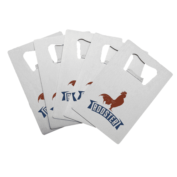 A credit card style, rectangular steel bottle opener that is perfect for branded or promotional wear. Compact in size so as to fit in a card holder or wallet.