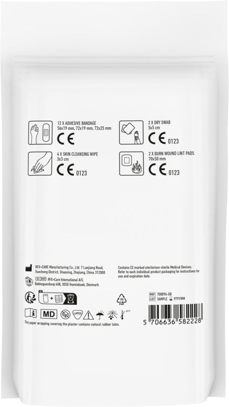 Stay prepared on your journeys with this elegant Travel First Aid Kit, thoughtfully packed in a white Kraft pouch made from FSC-certified paper. It includes essential items such as wash-proof plasters, skin cleansing swabs, dry swabs, and burn wound lint pads, all compliant with EU safety standards. Ideal for corporate gifting, the kit features full-colour printing to showcase your brand with sophistication while offering practical care wherever your travels take you.