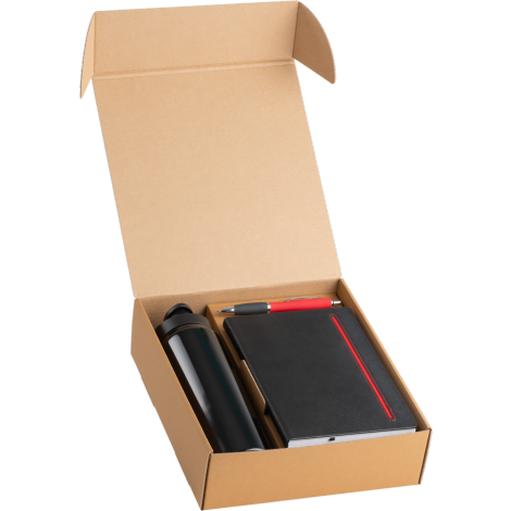 Welcome Gift Set 14 combines elegance and practicality to make a memorable first impression. It features a 750ml Tide Water Bottle with a convenient flip cap and customizable branding, a Contour Metal Softfeel Ballpen finished with premium rubberised coating for a refined touch, and a Denim A5 Notebook accented with coloured stitching. All items are beautifully presented in a bespoke box complete with a full-colour sticker, offering a sophisticated solution for corporate branded merchandise.
