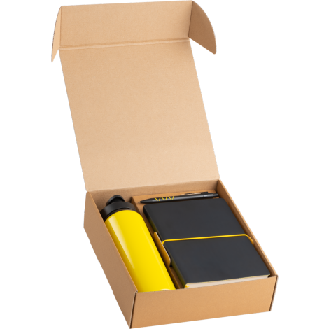 Welcome Gift Set 15 combines practicality and elegance, featuring a 750ml Tide Water Bottle with a convenient flip cap, a premium Sorrento A5 Notebook with a soft-feel cover, and a stylish Match Ballpen enhanced by unique coloured engraving. Presented in a customisable box with a full-colour sticker, this set offers a refined and memorable way to welcome new team members or clients with impactful corporate branded merchandise.